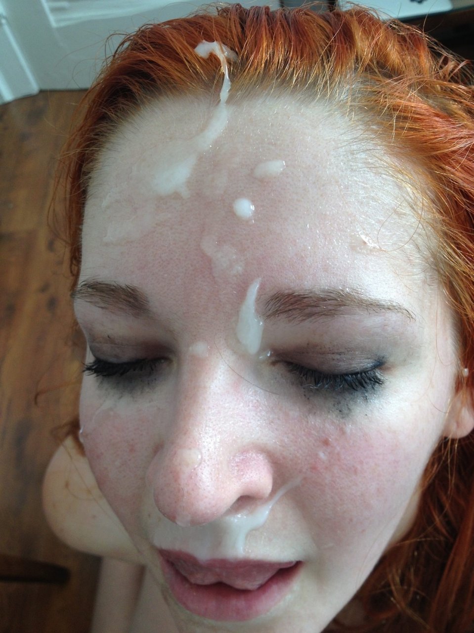 Сперма стекала медленно по белой коже.