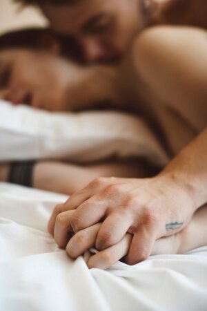 Ты ложишься на спину, я подставляю свой блестящий и мокрый от твоих слюней член к твоей пизде, вожу головкой по половым губкам, по клитору, ты течешь, ты мокрая. Я начинаю вставлять в тебя член, ты закрываешь глаза глубоко вдыхаешь и вздыхаешь, чувствуешь как я вхожу в тебя. Твои руки ложатся на грудь. Я начинаю медленно двигаться в тебе, а ты начинаешь мять свою грудь. Я держу тебя за ноги и постепенно ускоряюсь, твоя грудь трясётся в такт движениям, ты ее сжимаешь, а я уже размашисто трахаю тебя, засаживаю член в твою мокрую пизду. В комнате ритмичные шлепки, твои стоны и запах секса. Я наклоняюсь к тебе, целую и продолжаю трахать.